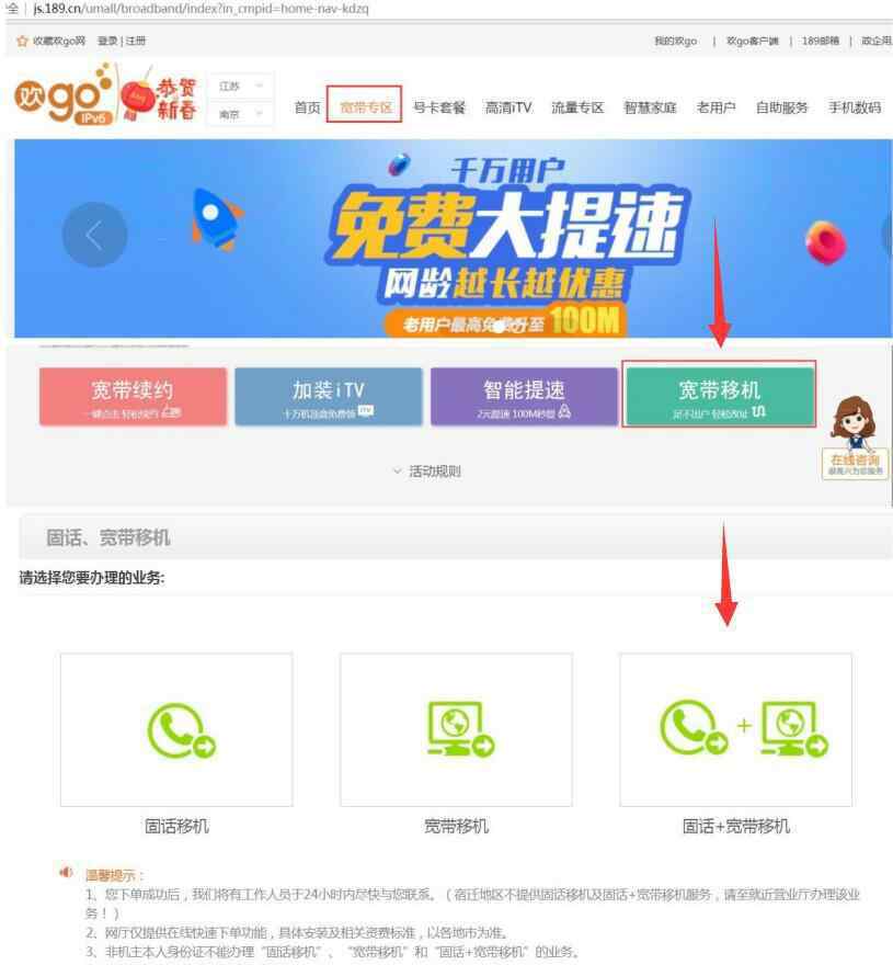 目前,江苏电信的宽带转移业务除了在线营业厅外,还可以在江苏电信的在线营业厅和江苏电信的手持营业厅在线办理。