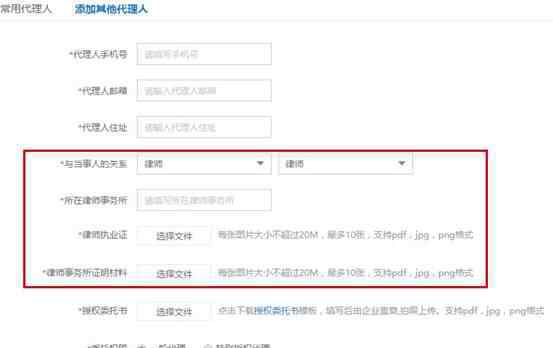 第三步,健全上诉人和委托人信息内容。挑选案由后,必须提交被告方身份证的照片正反两面,并填好手机号码、电子邮箱、邮政编码、当今家庭住址、邮寄送达详细地址;有委托人的必须点一下“加上委托人”,初次加上,则点一下“加上别的委托人”,填好委托人手机号码、电子邮箱、家庭住址、挑选与被告方的关联、授权委托管理权限,提交与被告方关联证明材料、委托授权书;如委托人为刑事辩护律师,还需填好所属法律事务所并提交律师执业证扫描文件及法律事务所证明文件。