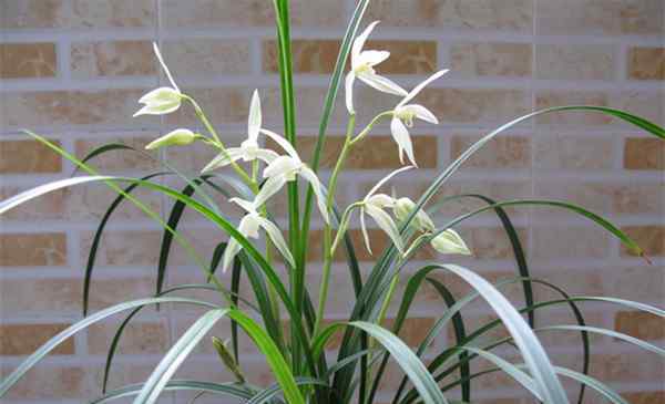 鹤庆大学士鳞茎不闪,叶直立性差,属悬叶。叶子很长,有时甚至高达90厘米。叶片比较坚实,大部分都是7叶丛生。花开3-5朵,花大绿白,茎绿。花唇上的水痕略浅。每株植物都有结实的幼苗叶子。