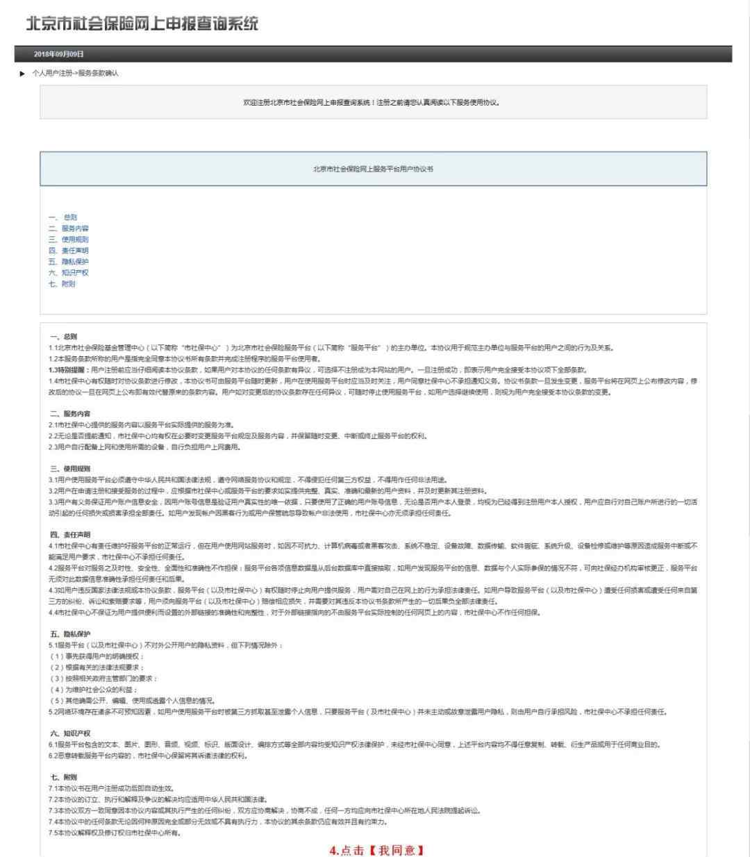 查看北京社会保险在线服务平台用户协议,