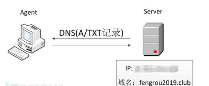 代理是受控主机,也称为客户端,服务器是控制节点,也称为C2服务器。双方的通信是通过DNS隧道A/TXT记录进行命令的分发和执行后命令的返回。在实验设置中,内网的虚拟机作为代理,而服务器使用国外的VPS,绑定到VPS is的域名是丰柔2019.club