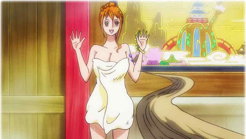 娜美作为这个澡堂的亮点之一,自然吸引了很多人的目光。娜美的毛巾滑落的时候,在场的人都在眼皮底下,都露出一副赚血的表情,仿佛看到了什么黄金首饰。