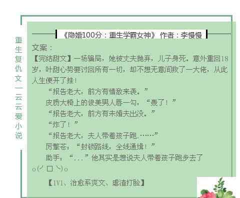 《隐藏的婚姻100分:重生校园女王》作者:李慢