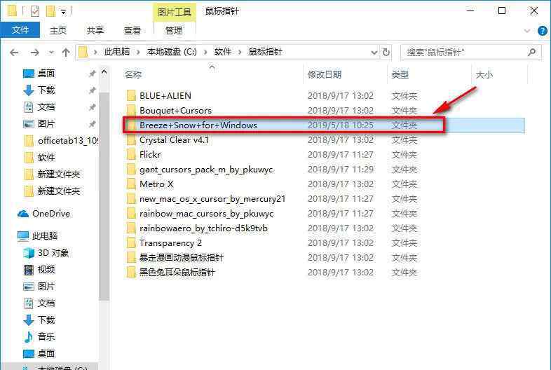 点击网站上的,进入下载页面,下载你喜欢的鼠标指针。下图显示了下载的鼠标指针包。