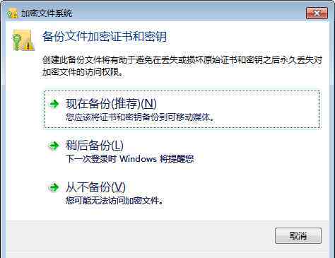 请记住:这个加密证书和密钥一定要保管好,不要删除,否则你在文件夹未解密的情况下重新安装系统,即使设置的用户名相同,系统也无法识别你属于同一个用户。没有这个加密证书和密钥,每个用户都可以看到之前加密的文件夹,但是没有人可以打开,这就成了永远的秘密。