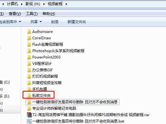 3.双击bat文件,将生成一个名为“私有文件夹”的文件夹。移动所有你想加密的文件夹,比如本例中的“一键检测微信好友是否删除你,对方不会收到消息”。