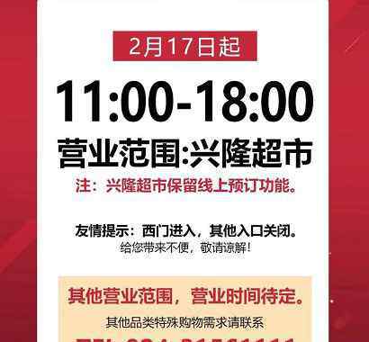 兴隆大东城从1月28日起才对外开放,营业时间从10: 00调整到16: 00。