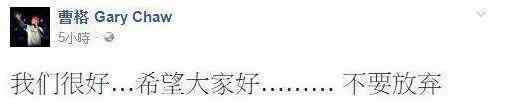 不管发生什么,我希望曹格能活下来,为我们唱更多美丽的歌。祝他们家庭幸福!