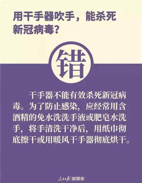 真相:干手器无法有效杀死2019-nCoV。为了防止自己感染新型冠状病毒,你应该经常用含有酒精或肥皂和水的抗菌洗手液洗手。