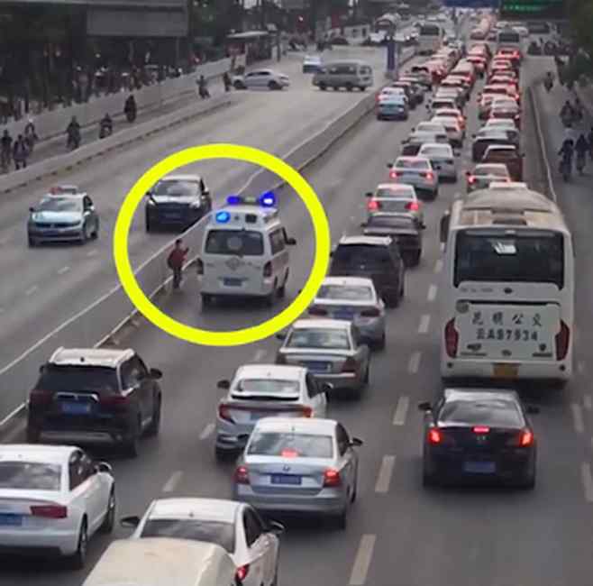 近日,云南昆明,一辆救护车因道路拥堵无法前行。小女孩发现后穿梭在车流中,挨个敲窗跟司机交流最终让出一条道路!