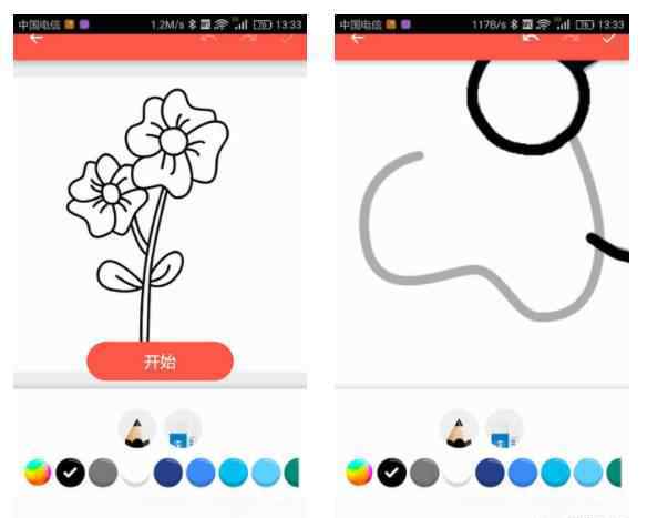 在简笔画的整个过程中,这个应用会为你追踪路径,然后你按照他给的路径同步画。整幅画采用的是由简单变复杂的思路,但是你练习的时候,前面的结构和曲线都比较简单,但是后面会越来越复杂。