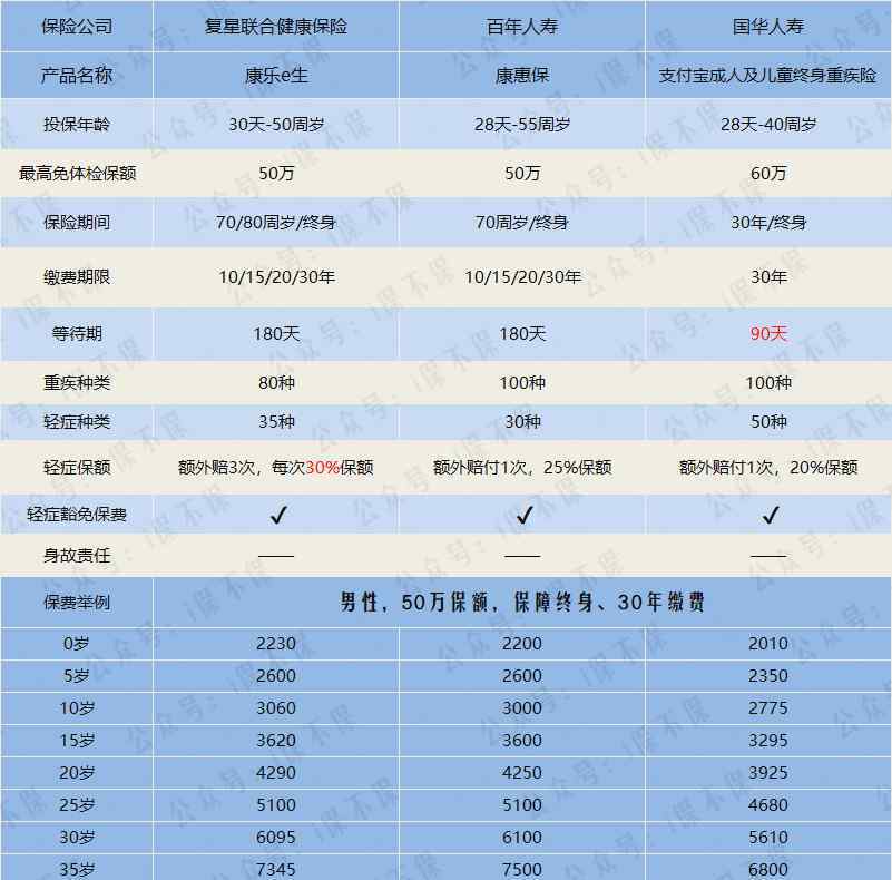 宝哥拿国华终身模式和市场上流行的两种性价比高的消费者终身重疾保险做对比: