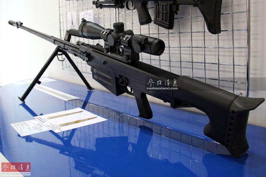 俄罗斯图拉仪器设计局OSV-96半自动反器材步枪,使用12.7毫米专用狙击弹药,其最大射程达2500米,弹匣容量5发,其配用弹种还包括穿甲燃烧弹,100米距离上可击穿20毫米厚钢板。