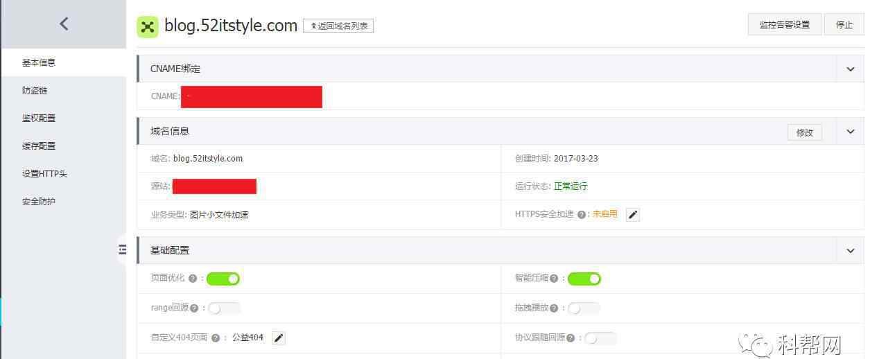 基本配置中,可以开启页面优化,只能进行压缩,可以定制404页(此处选择公益)