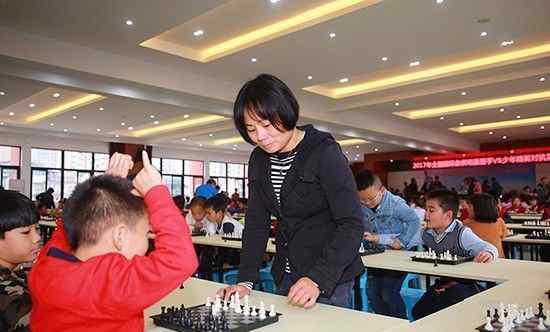 10月17日,在2017年全国国际象棋退伍军人精英赛期间,包括部分国家队队员在内的所有选手进入重庆几所小学开展象棋普及活动。