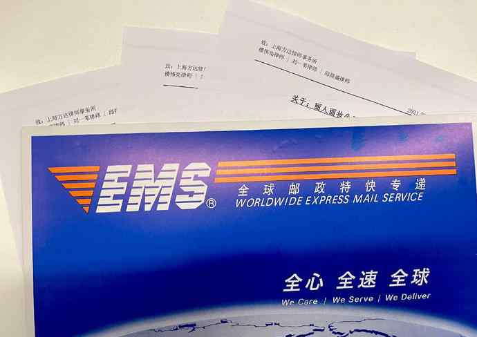 翁淑华的微博配图显示,其通过EMS邮寄了几份材料,材料的抬头是致上海方达律师事务所的三位律师。