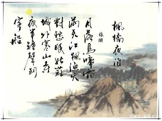 古诗词艺术歌曲《枫桥夜泊》的创作具有古香古色的中国传统文化特点,有着独特的审美特征和文化内涵。《枫桥夜泊》原是唐朝诗人张继途经苏州城外的姑苏寒山寺时,有感于当时的泊舟静夜、孤独思亲的情境而创作,这一首经典名诗,流传千古,直至今日仍为人们所喜爱。在这首诗歌中,张继运用非常细腻的笔触,形象、传神地刻画出一幅秋夜江南、水上行人的场景画面特点。通过“月落乌啼霜满天、江枫渔火对愁眠”的描述,很具体地表现出江南深秋夜晚的愁情别绪,尤其通过“月落乌啼”、“江枫渔火”的描述,很好地展现出不同的景物及其气氛、情绪特征,从而表达出了 作者的淡淡“愁”情怀。