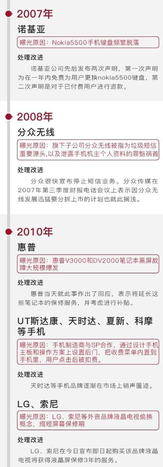 自1991年推出以来,3.15党已经走过了27届,这将成为消费者多年来关注的焦点。这些年来,315晚会曝光了很多大大小小的企业,包括科技行业的苹果、三星,汽车行业的路虎、奔驰,快消行业的麦当劳、Zara、MUJI,以及最近互联网公司的淘宝、美利。每年哪个公司上市会是315上最大的悬念。这样,时代财经整理了历年315个曝光品牌的名单,并回顾了哪些企业被列入名单。