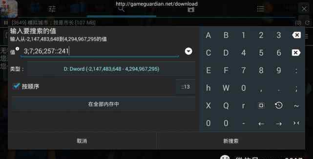 2.打开GG修改器,搜索数值[3;7;26;257::241】。