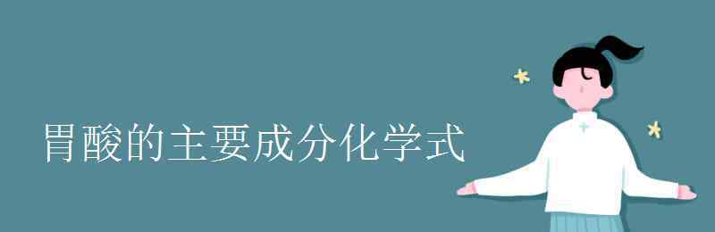 胃酸是一个溶液,是一种混合物,没有化学式。其主要有效成分是氯化氢HCl。胃酸存在着两种形式:一种为游离酸;另一种为结合酸,即与蛋白质结合的盐酸蛋白质。二者的浓度合称为总酸度,其中游离酸占绝大部分。