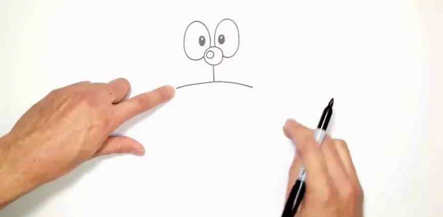 在鼻部下画上一条横线,长短和鼻部的直徑一致: