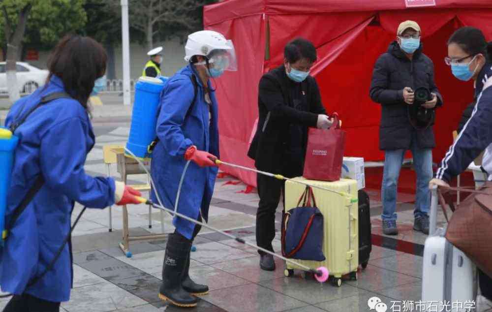 学校顿时繁忙起来,交通组指挥家长车辆有序进出,报到组检查14日体温记录,消杀组消除各处隐患,测温组确保人人平安,搬运组实现行李到宿舍无缝衔接。由校党总支成立的志愿服务队早已推敲点点细节,传递着丝丝暖意。新冠无情,石光有爱。