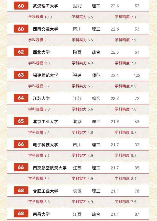 11-20名排名:北京师范大学、吉林大学、中国人民大学、同济大学、山东大学、西安交通大学、中南大学、中国科学技术大学、哈尔滨工业大学、东南大学。