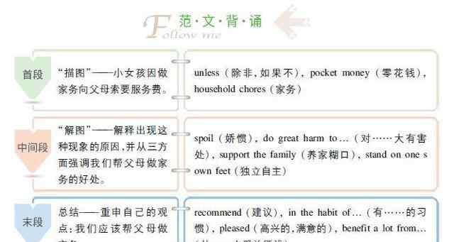 一般来讲,真正决定作文表达效果的还是中间段。为了紧扣题意,增强表达效果,中间段的写作可采用以下三种方法: