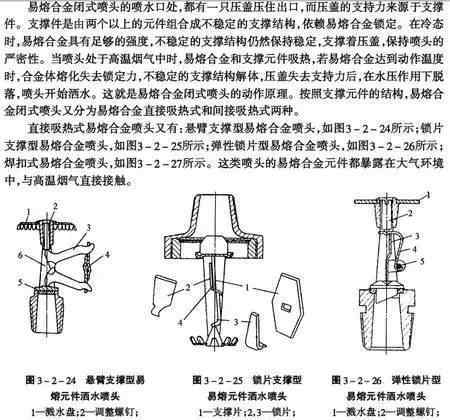 释放机构中的热敏元件是带有易熔元件的喷头。当喷嘴被加热时,由于可熔元件的熔化和脱落,喷嘴打开。