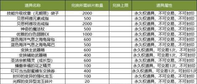 3.兑换内容和数量请参考清单(此物品为活动物品,不能交易,活动结束后会删除)