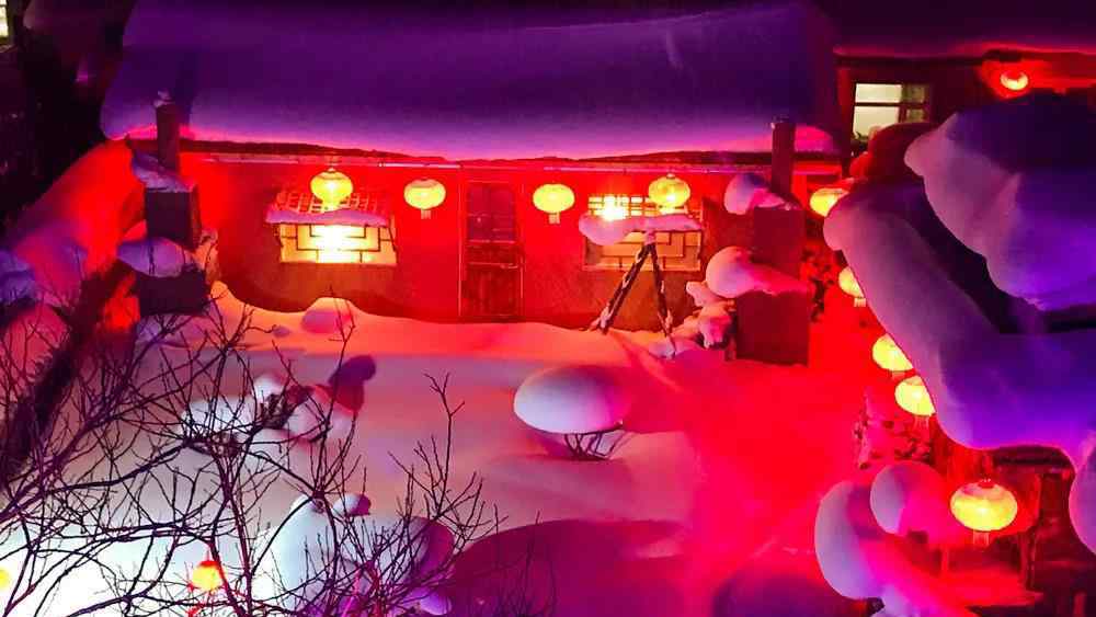 这里有美丽的“雪蘑菇”,映衬着白雪皑皑的红灯笼,很像《冰雪奇缘》里的童话世界。
