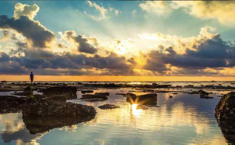 涠洲岛西部,据说是全岛看夕阳最好的地方。有人说这是中国版的巴厘岛,所以很多情侣会选择在这里拍照。当然要看日落,还有一个地方——滴水丹平,东海岸还有一个1.5公里长的沙滩——彩虹滩,非常适合看日出和拍大型电影。
