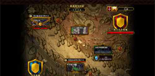 非练习模式下的激战地图如上,右上角是激战的信息。当红血条归零,就是战争的胜利。因为地图是按照时间和通关顺序依次打开的,所以进入的优先顺序是红色炮击地点>:救援谷>:盗墓贼的秘密通道>:无尽前哨,具体原因下面慢慢解释(休息地点只能通过前哨或者秘密通道进入,不能单独进入)