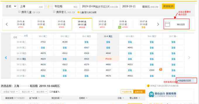 虽然移动终端上的模糊查询用起来很爽,但是查看出发日期前后的时候PC页面显示更完整。所以利用飞猪PC的“特价日历”可以更直观的看到流行假期前后的情况。