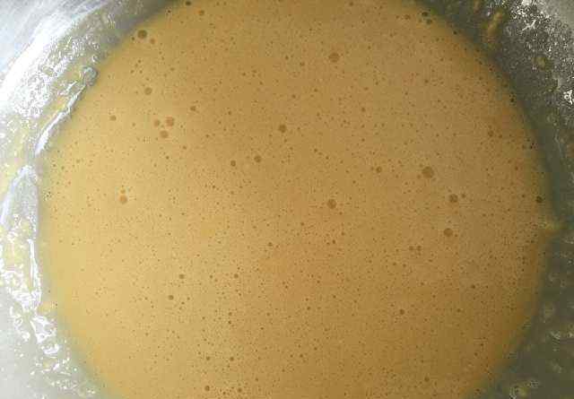 配料:5个鸡蛋,3汤匙白糖,3汤匙植物油,1/4杯面粉,2/4杯玉米淀粉,半杯牛奶(220 g量杯)