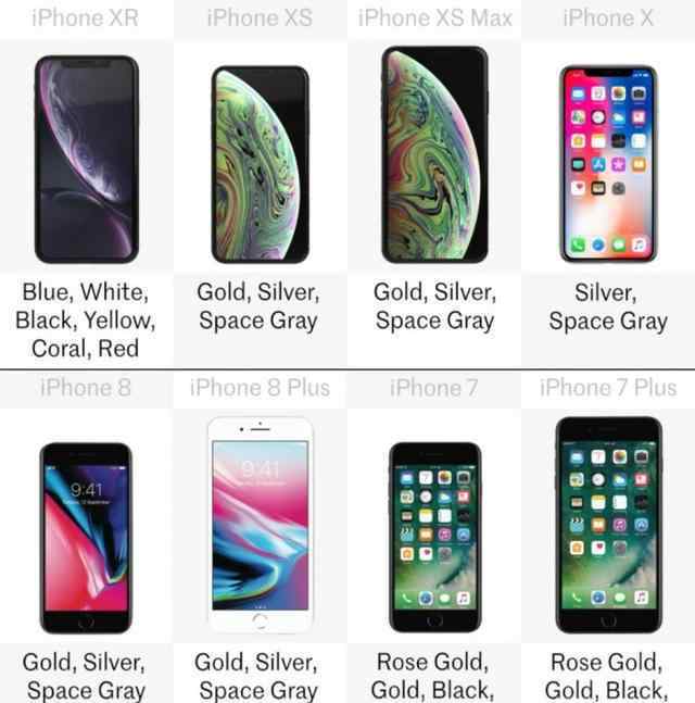 颜色方面,主要是金色、银色和太空灰色,但iPhone 7有黑色和玫瑰金可选。IPhone XR提供了多种颜色供消费者选择,包括蓝色、黄色、红色、橙色和桃红色。