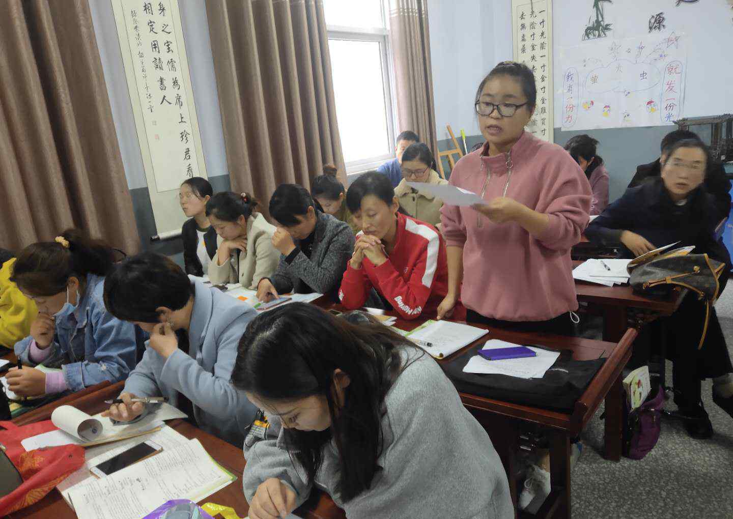 简短的休息过后,所有语文教师集中观看县里推送的示范课,观摩课堂,及时作出课堂记录和评价,随后各小组成员积极探讨,交流讨论,畅所欲言提出自己的看法。