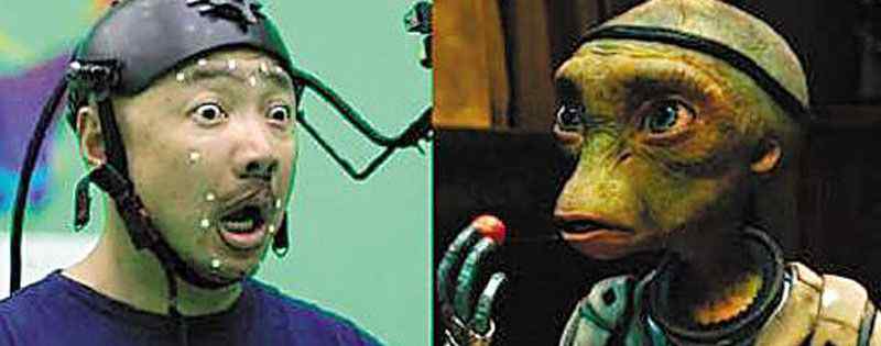 据Xu zhng本人介绍,这是他第一次以“动作捕捉”的特效技术出现在电影中。他首先在工作室里表演他所有的表情和动作,然后特效组用电脑把他们渲染成“外星人”。