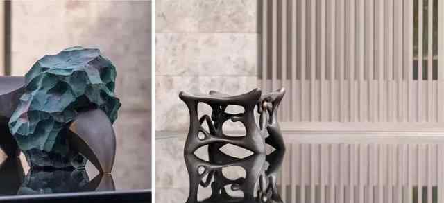 一点点星光映在雕塑上,与涟漪下的水庭星座融为一体。