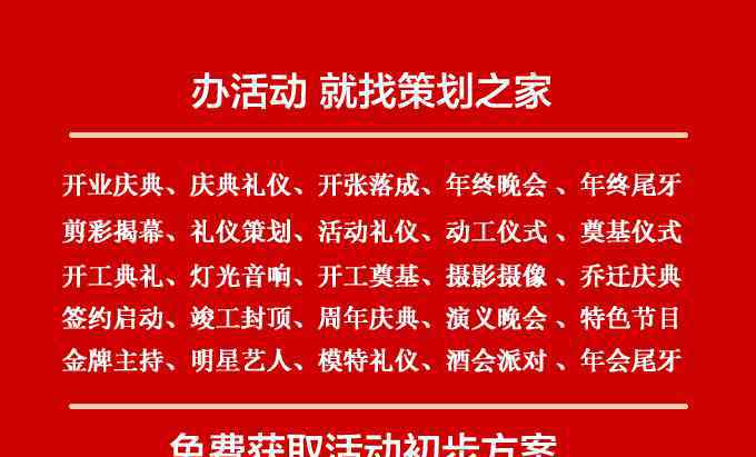 策划之家(www . cehuazhija . com),拥有多年的活动策划经验,资深策划执行团队,整合各种资源,自营工厂制作素材搭建舞台,策划执行搭建一站式服务,无需中间商赚取差价,是您的最佳选择。选择策划屋,你值得拥有最好的!