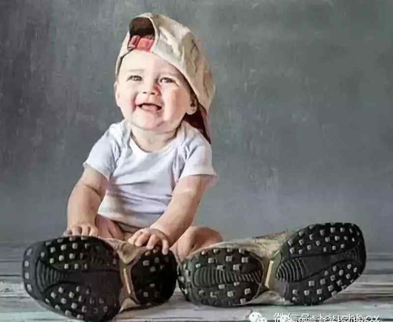 男孩子喜欢穿爸爸的靴子,学着爸爸的样子走路。