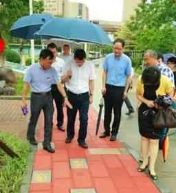 在我校校长石希武、校长助理郭副主任一行的带领和介绍下,沿着婺源广场、志道路、足迹路进入馆、育才亭,考察我校校园整体文化环境。