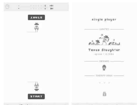 两个牛仔比赛看谁是快枪。游戏也很简单,准备好了,稳,砰!最后一声巨响出现后,点击屏幕,你的牛仔就开枪了,和另一边对比,看谁反应更快。