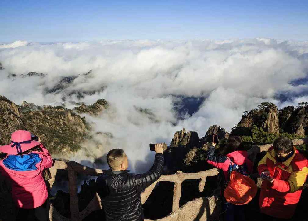 让我们像在人间仙境一样欣赏黄山的云海。真的很漂亮!