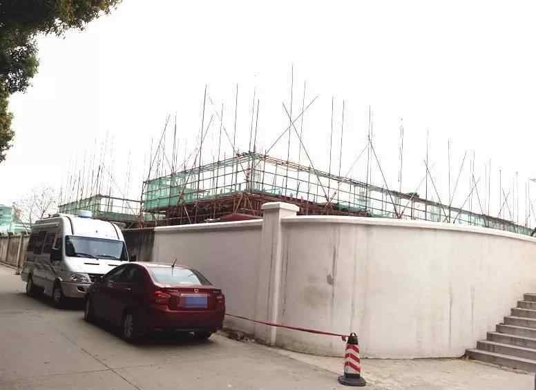 从外面看,幼儿园建设项目已经进行了一半,但是施工现场没有工人,处于停工状态。
