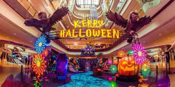 在这个“鬼出没”时期,一些商场会在走廊、墙壁、门口悬挂骷髅和幽灵面具,让商场里处处可见恐怖场景。今年万圣节,杭州购物中心有自己独特的招数。鬼屋探索、音乐派对、小鬼市场、弹窗店、马戏、时装秀等诸多互动体验活动吸引消费者打卡。