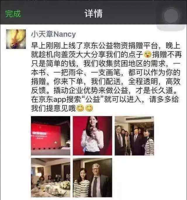 作为JD.COM公共福利基金会的名誉主任,她与比尔·盖茨分享了她的公共福利计划,并在晚餐时用英语侃侃交谈,就像一个坚强的女人。