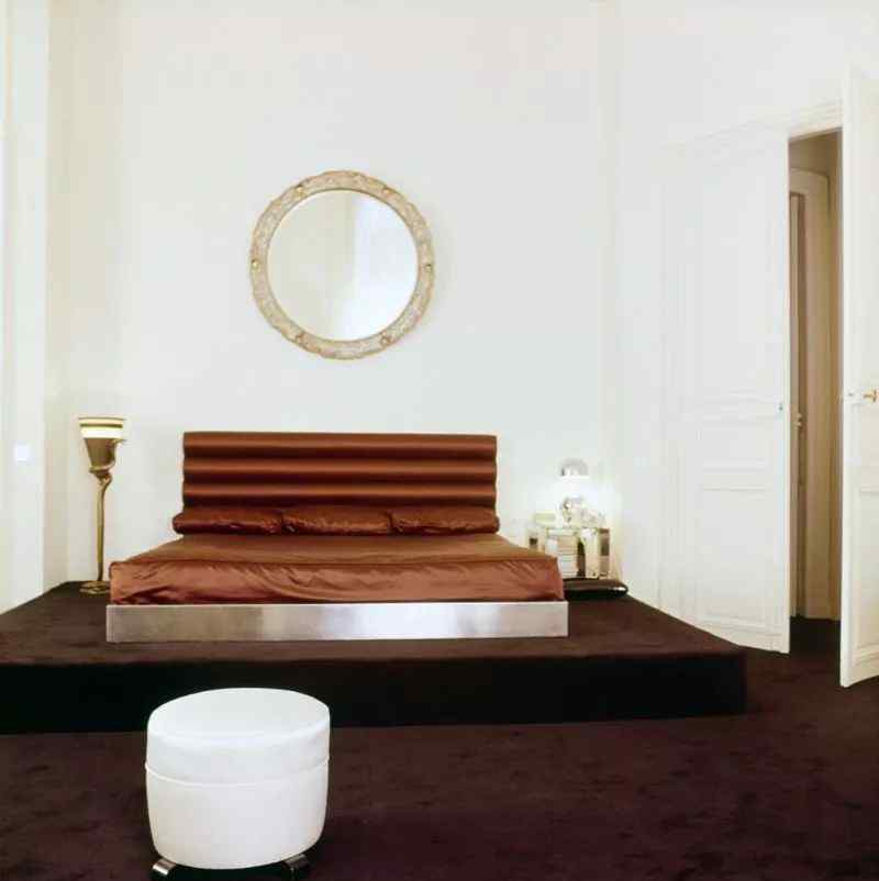 他疯狂地爱上了18世纪的风格,整个公寓充满了他最华丽、最颓废的幻想——根据历史文献定制的路易十五家具,镶嵌羽毛的华丽顶盖是他自己设计的。