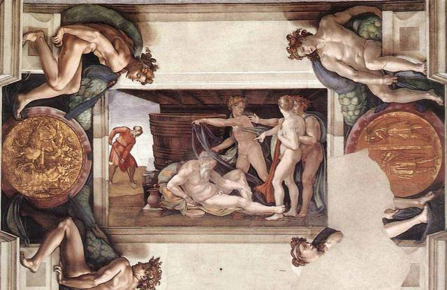天顶画《创世纪》以旧约圣经的《创世记》为主线,描绘了343个人物和他们之间的故事。