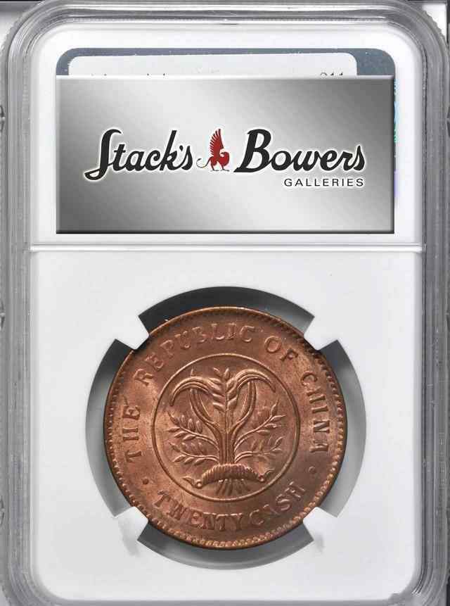 20现金湖南省早双旗嘉禾当20回PCGS MS 63,估价600-800美元,成交价1680美元